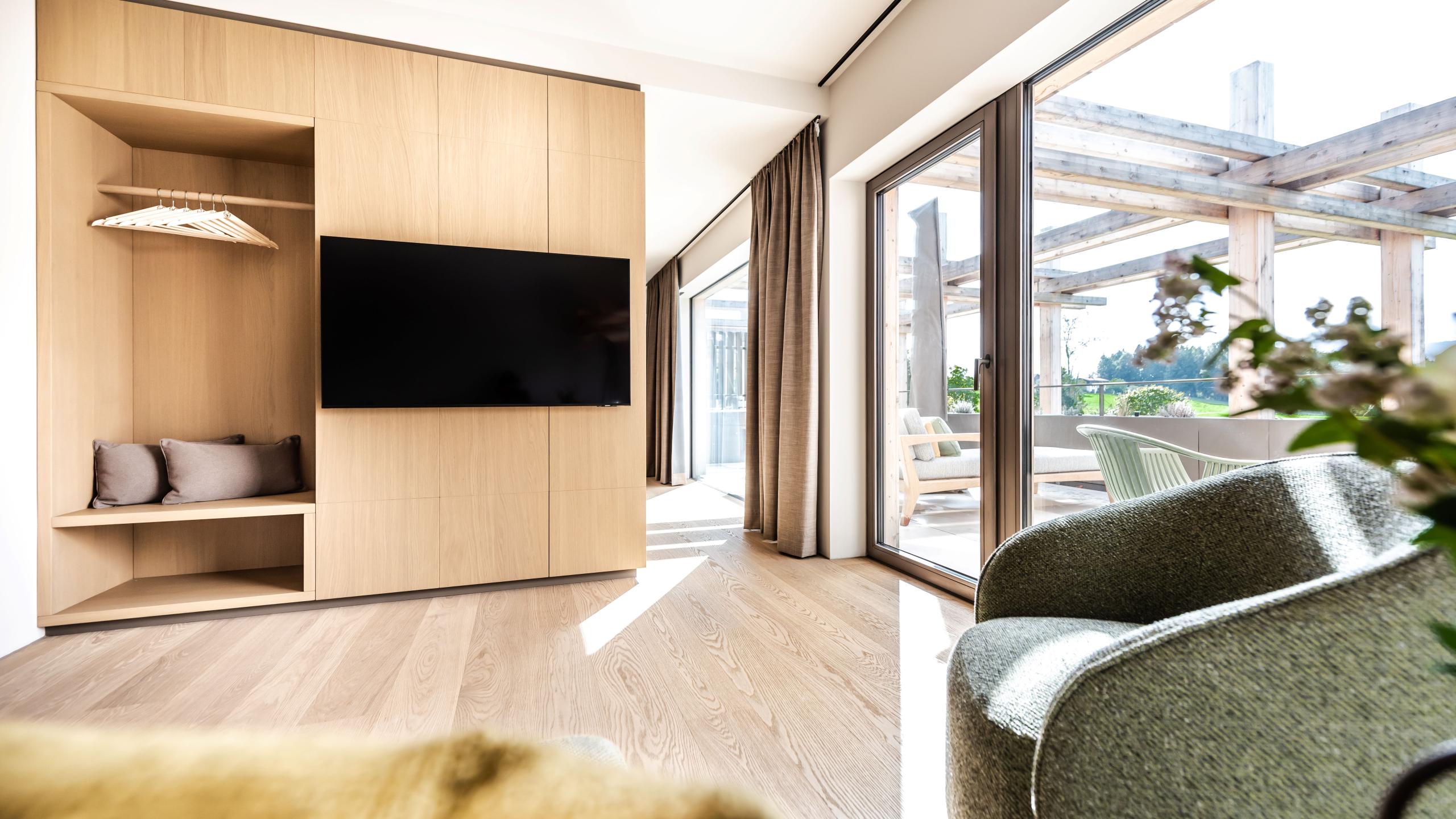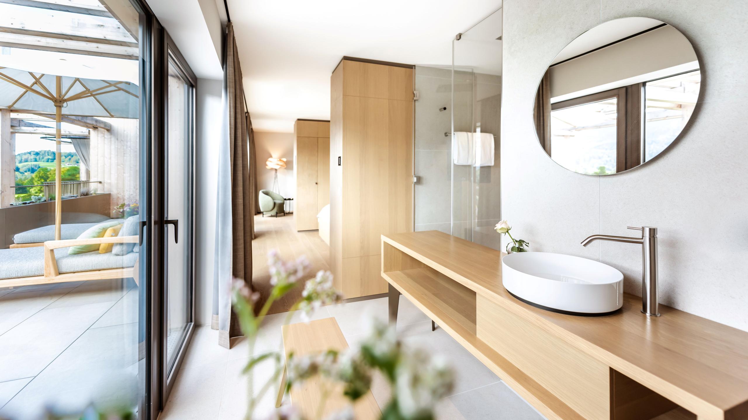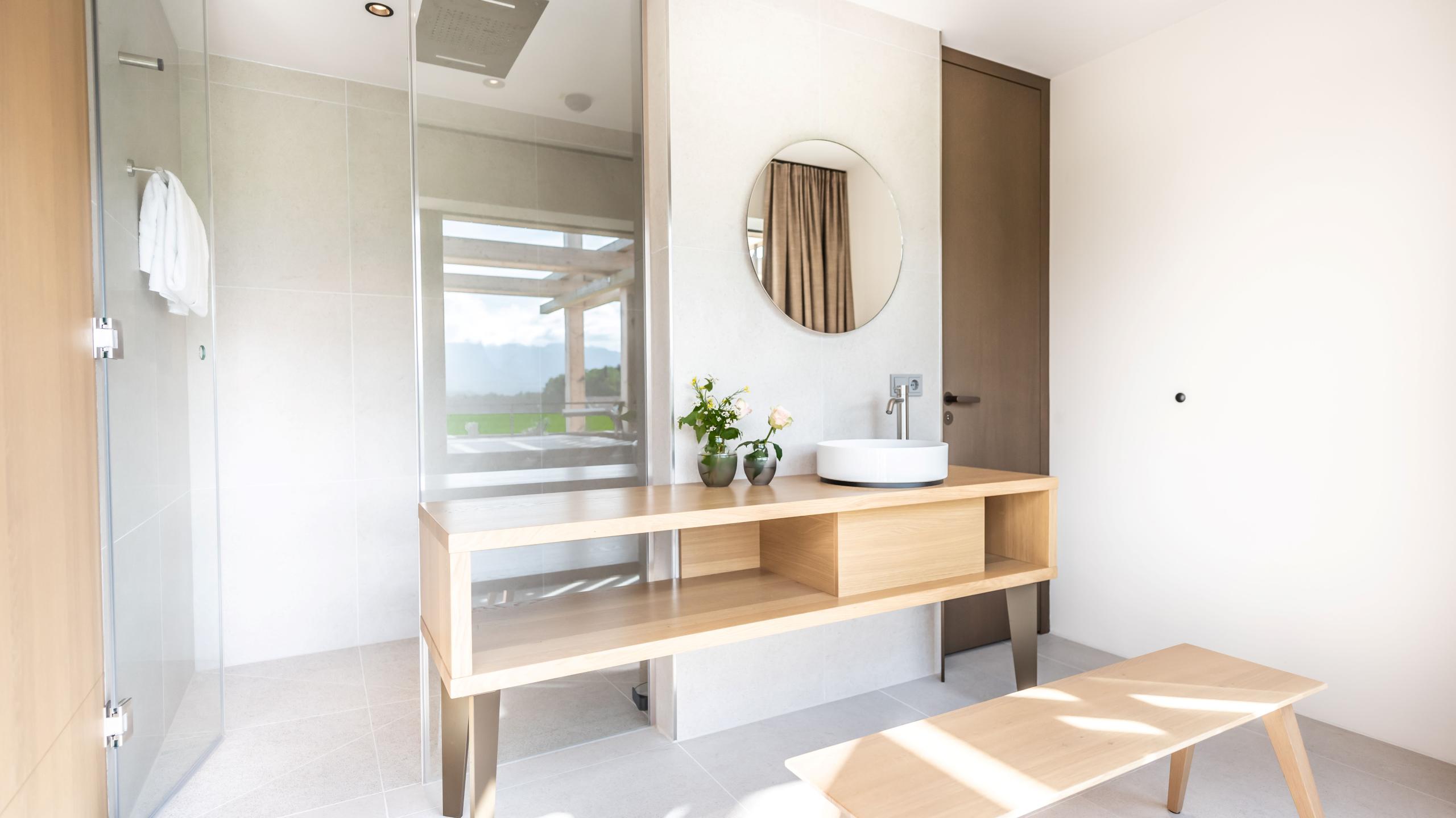 The Berg suite can welcome up to three people and offers them an unforgettable holiday. It’s situated on the top floor and offers stunning views across the mountain world. Look forward to stylish furniture, a modern design bathroom, and floor-to-ceiling panoramic windows with amazing views. The highlight of our Berg suite is a dream 30m2 roof terrace with private whirlpool. A parking space in the garage is included.